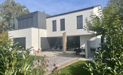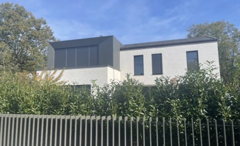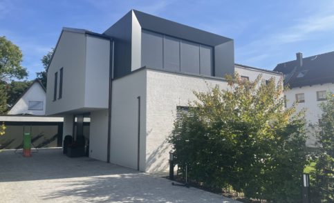 Neubau einer Villa in Unterschleißheim mit modernen, akzentuierten Gestaltungsmerkmalen.